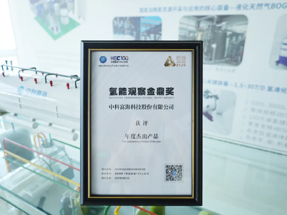4月22日,CHEC2025第五屆世紀(jì)氫能與燃料電池大會在上海圓滿結(jié)束。會議以“聚焦氫未來,助力碳中和”為主題,旨在打通氫能產(chǎn)業(yè)各環(huán)節(jié),推動產(chǎn)業(yè)鏈發(fā)展。會議現(xiàn)場揭曉2025氫能觀察“金鼎獎”名單,中科富海憑借在氫能領(lǐng)域的產(chǎn)品創(chuàng)新研發(fā)和產(chǎn)品應(yīng)用示范等方面的實(shí)踐成果,榮獲“金鼎獎·年度杰出產(chǎn)品”獎。氫能產(chǎn)業(yè)“金鼎獎”是...